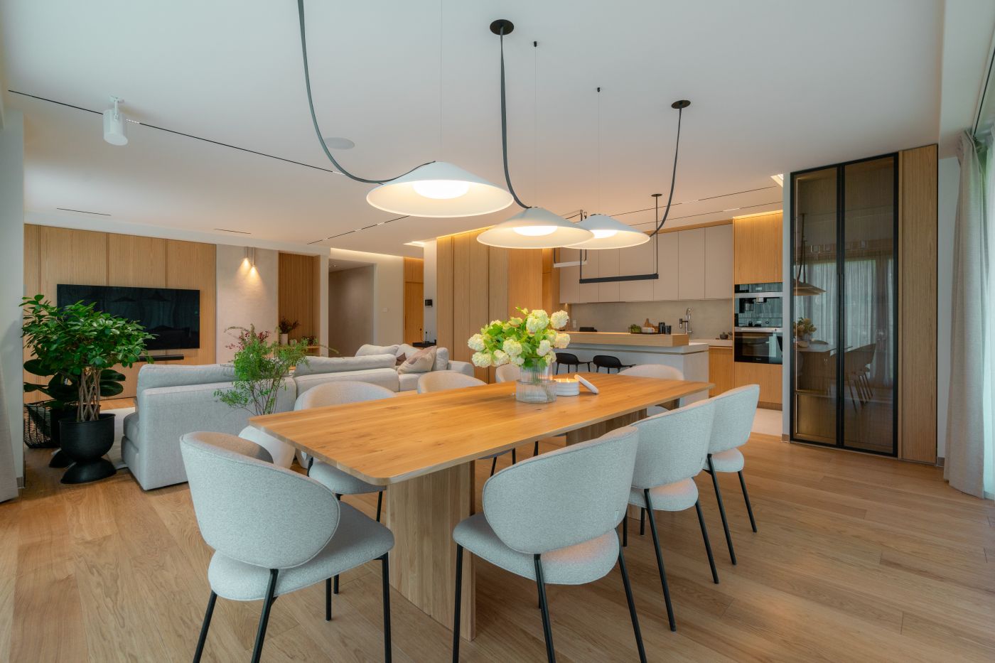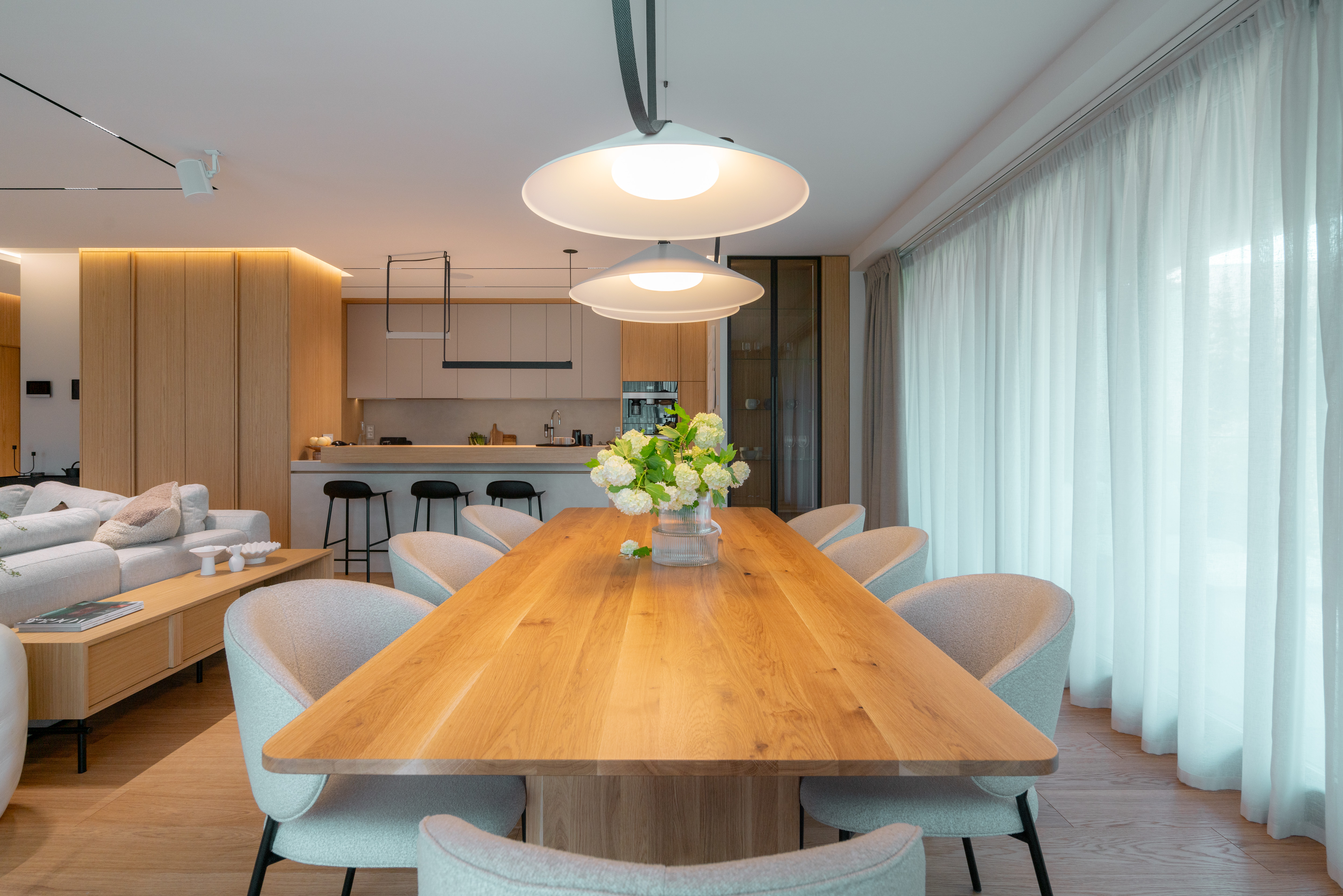 W tym domu w Krakowie dominującym motywem jest fornir naturalny o ciepłym wybarwieniu, zastosowany konsekwentnie w zabudowie meblowej w całym wnętrzu. Naturalna faktura drewna wnosi do domu przytulność i ponadczasowy charakter, jednocześnie...