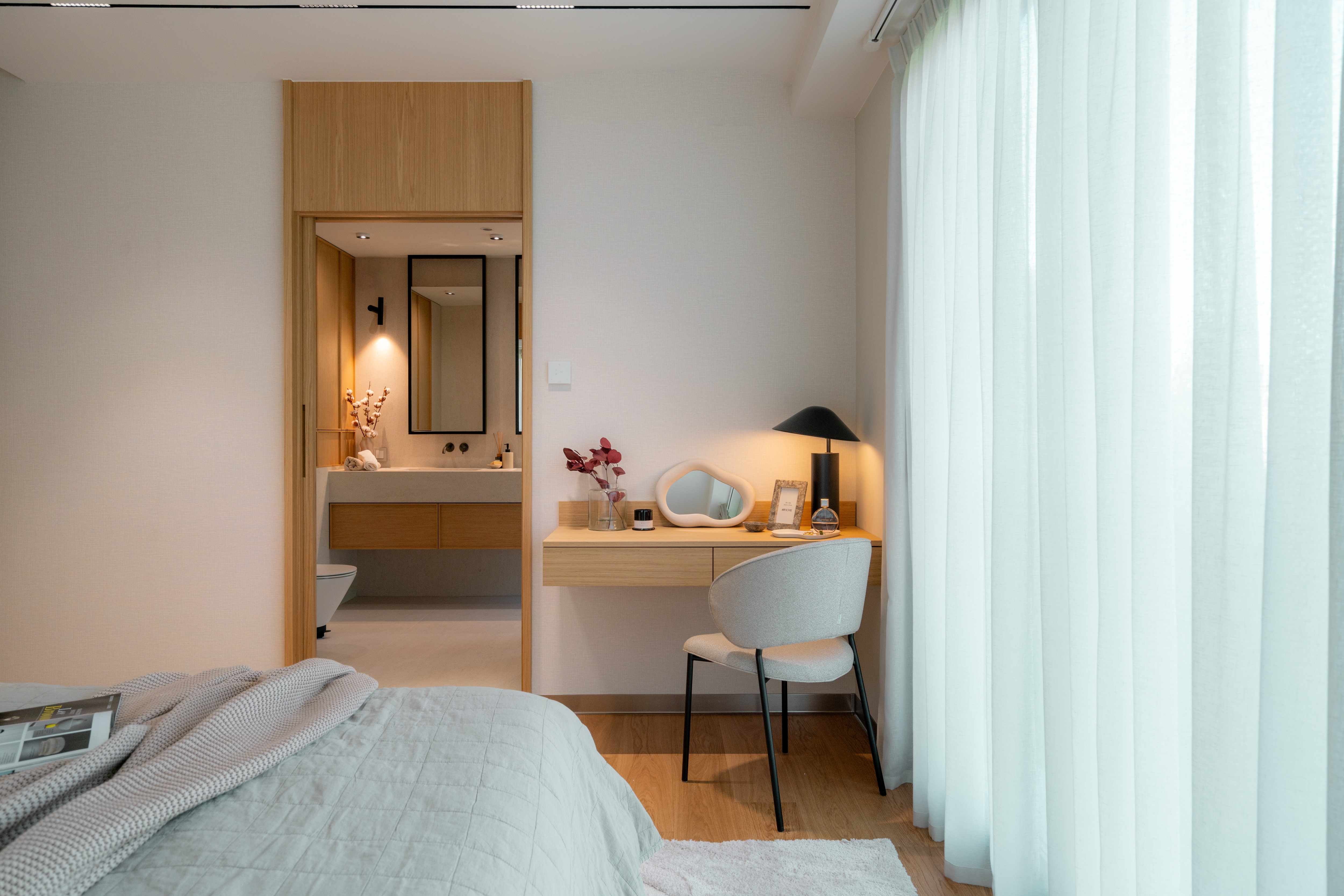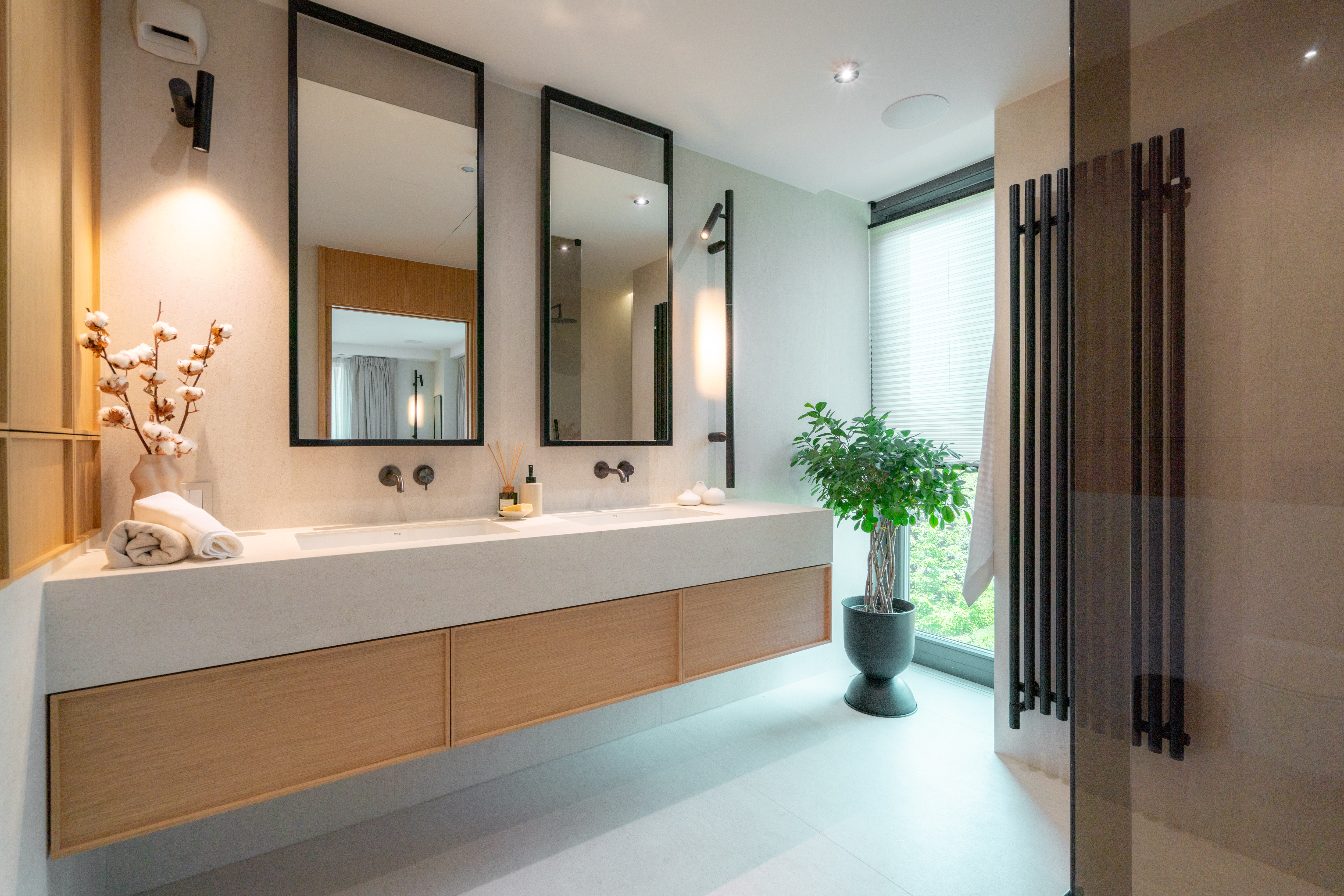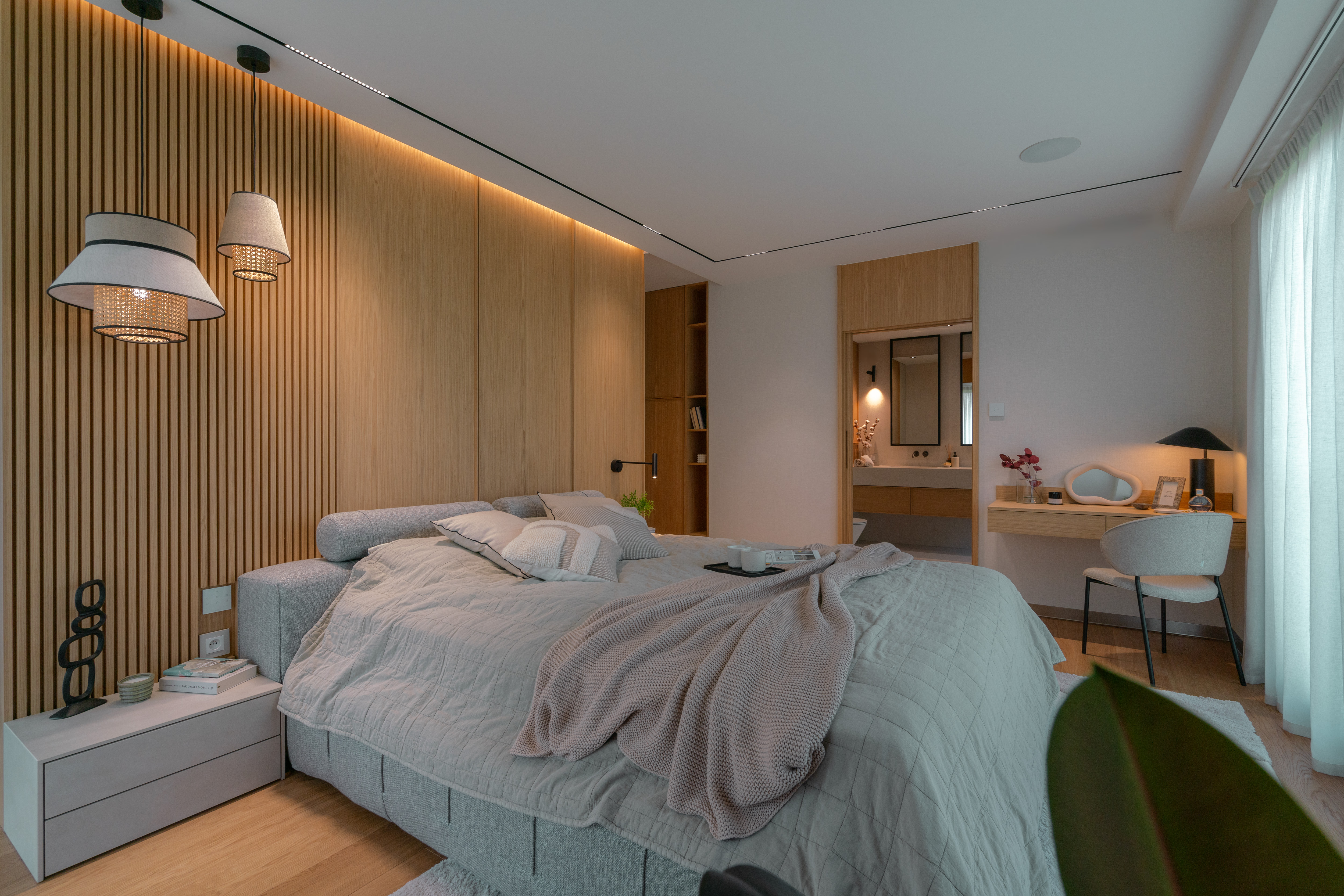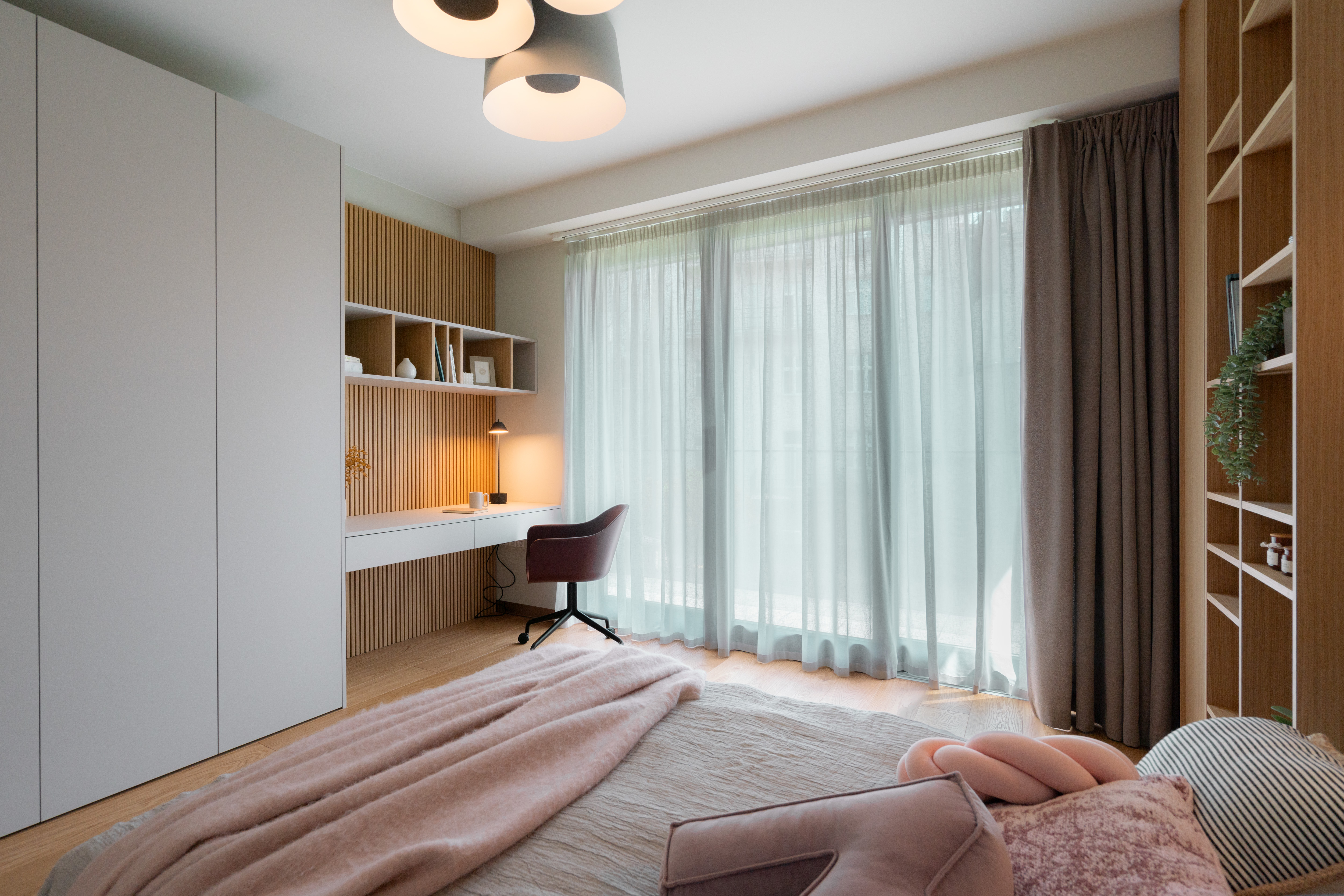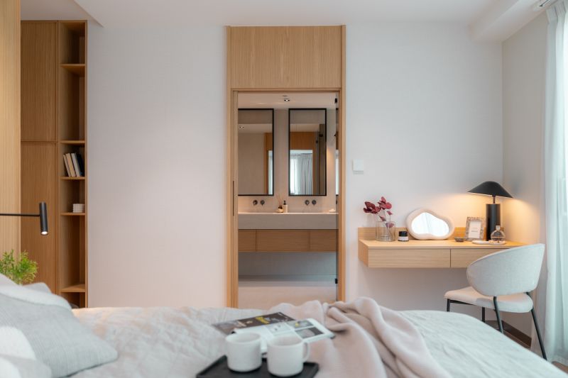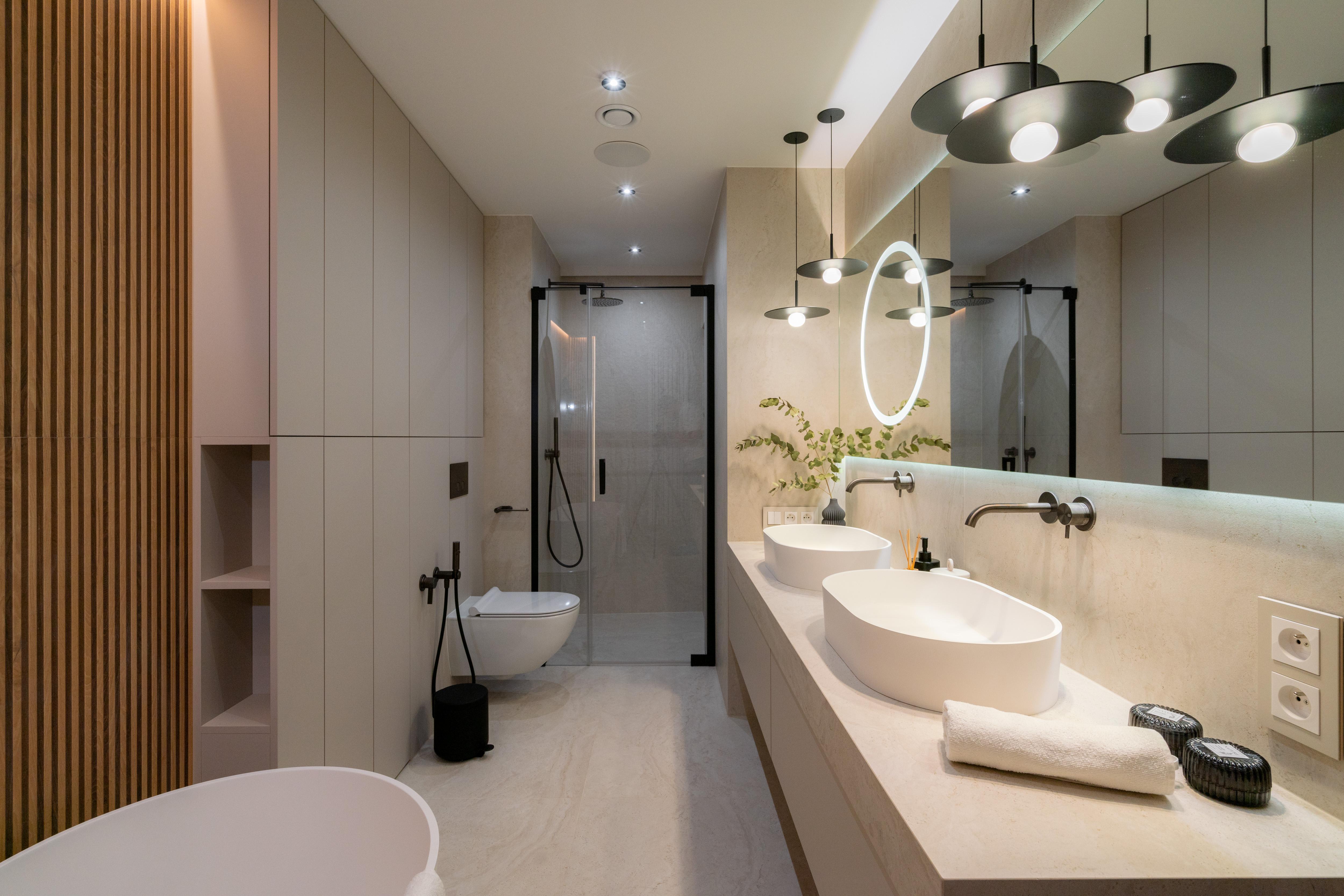 Całość dopełnia system otwierania bezuchwytowego, który wzmacnia minimalistyczny charakter wnętrza i zapewnia jednolitą linię mebli. Przemyślana ergonomia — odpowiednie wysokości robocze, ukryte schowki i logiczny podział stref — sprawia, że projekt łączy estetykę z funkcjonalnością. Wykonanie z materiałów premium i dbałość o detale gwarantują trwałość i elegancki wygląd na lata.